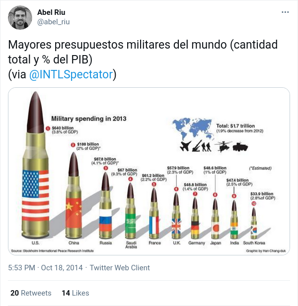 Comparando gasto militar nacional en valores absolutos