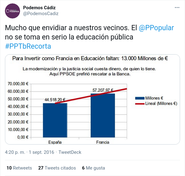 Comparando inversión en educación en España y Francia